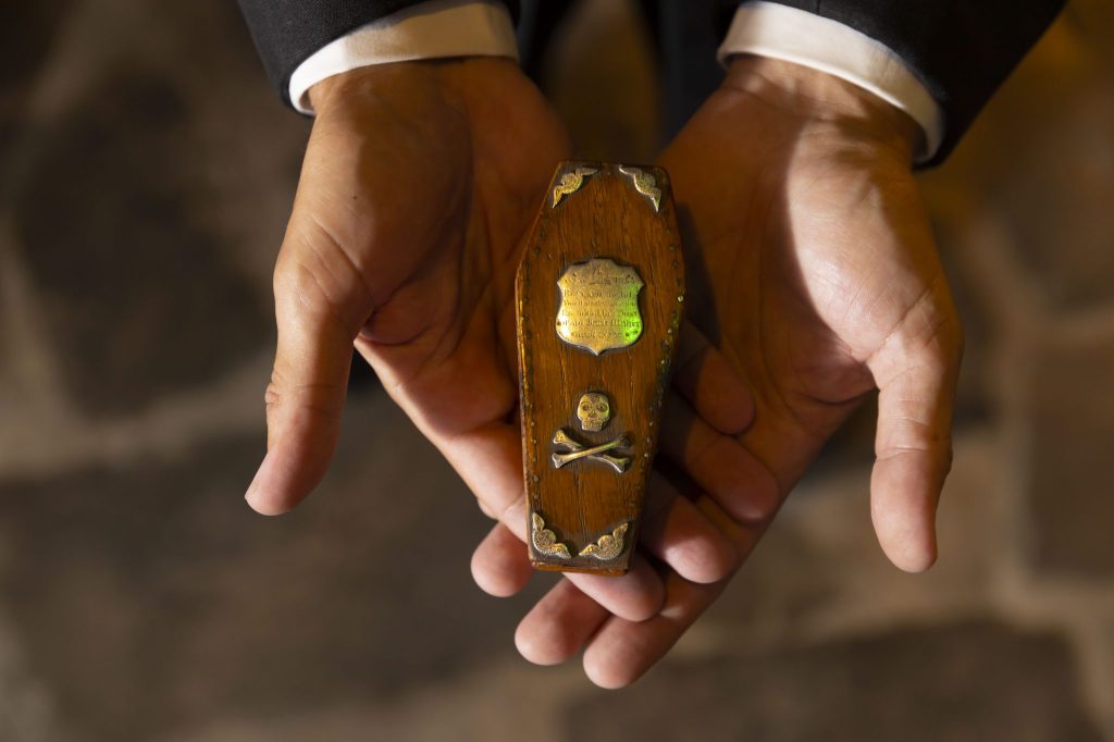 One of the more unusual items is a miniature coffin which was sent home from America in 1844 with human ashes inside.