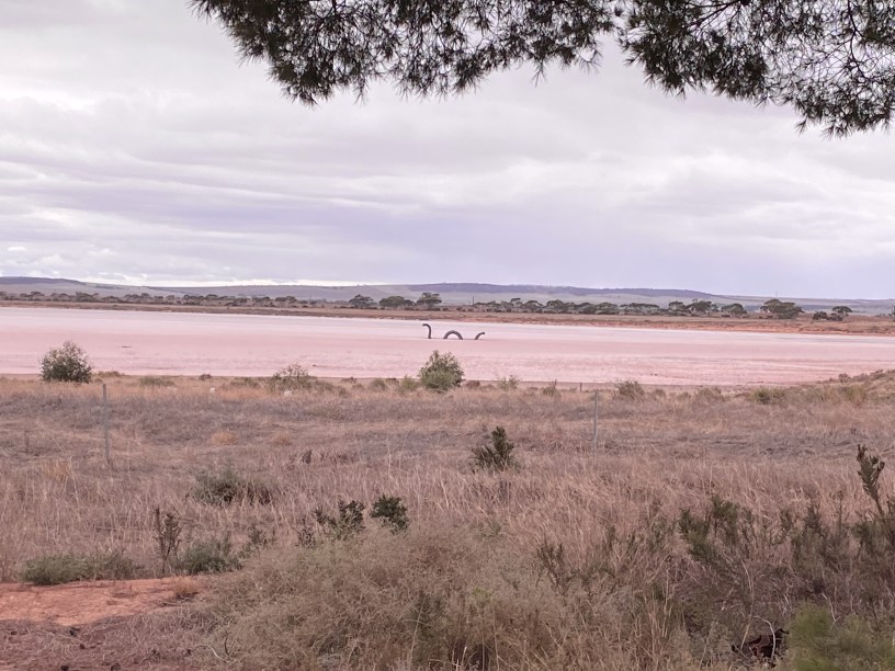 Anglo&Celtic, with no high-tech equipment whatsoever and only a battered old iPhone, easily spotted Nessie’s cousin, Barbie, at Lake Bumbunga in South Australia recently. In a pink lake, no less! But she’s far less shy than her Scottish counterpart. Also, she’s made of old tyres and doesn’t move, which helps in the quest to spot her.