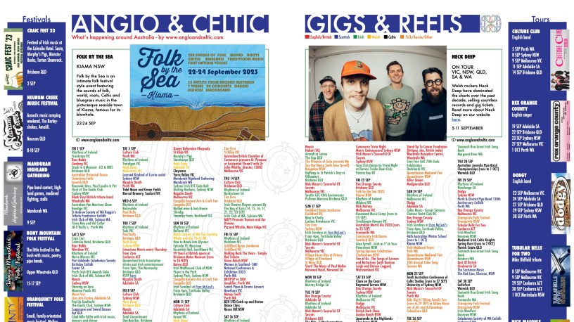 This is our national gig guide for September 2023, as featured in Anglo and Celtic magazine September edition. If you just want to download the gig guide on its own without downloading the whole magazine, you can do so below.