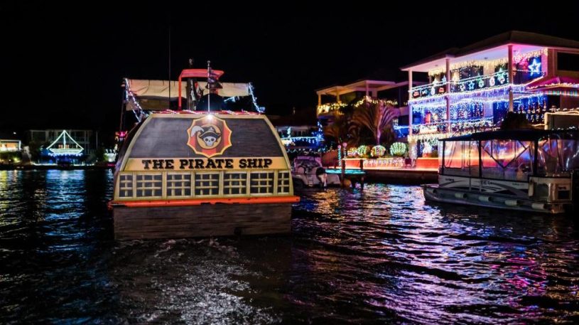 Yo Ho Ho and a bottle of rum, hop aboard The Pirate Ship for a Christmas cruise through Mandurah WA’s beautiful inland waterways and canals. The Pirate Ship offers 360 degree views, BYO alcohol and a steering wheel for the kids. Runs from 1st December to 6th January.
