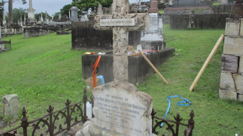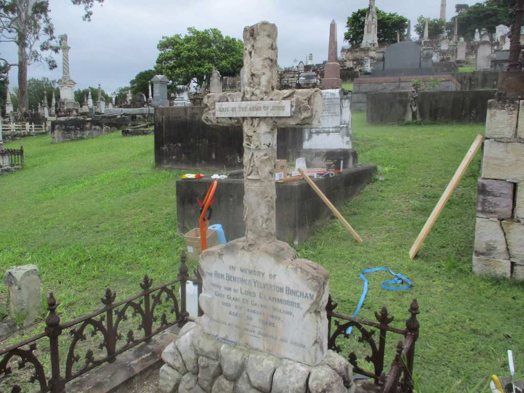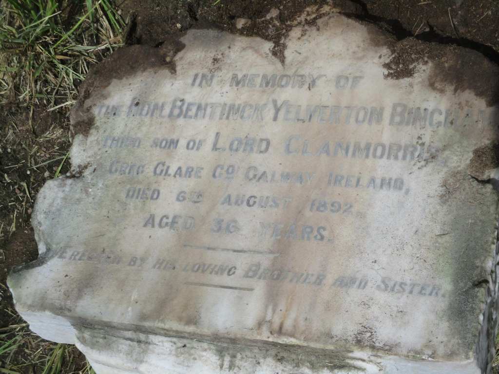 According to the research undertaken by Darcy Maddock so far, Bentinck Yelverton Bingham was born in Galway and came out to Australia when he was just 20 years old. He was notified of an inheritance and went home to Ireland, then came back to Queensland with money. He invested in property but was ripped off and became mentally disturbed. He ended up in an asylum in the year he died, aged 36. The headstone was erected by his brother and sister.
