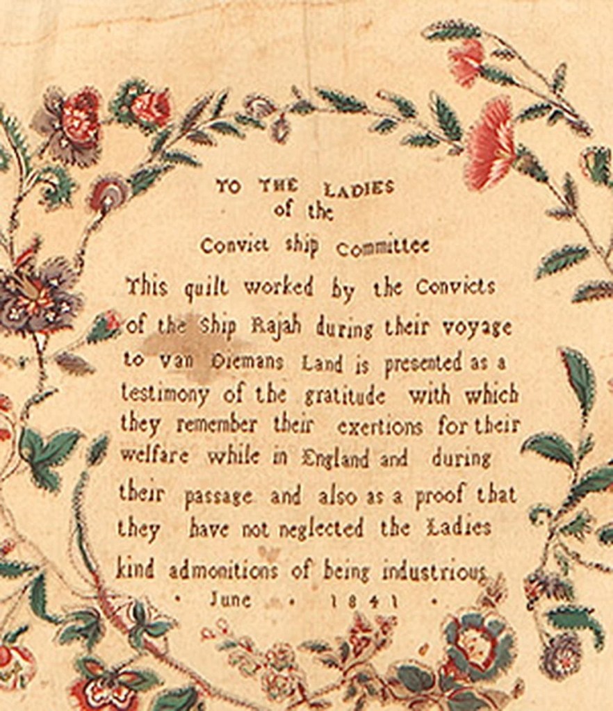 - It was created by convict women in 1841 on the ship Rajah, travelling from England to Van Dieman’s Land.