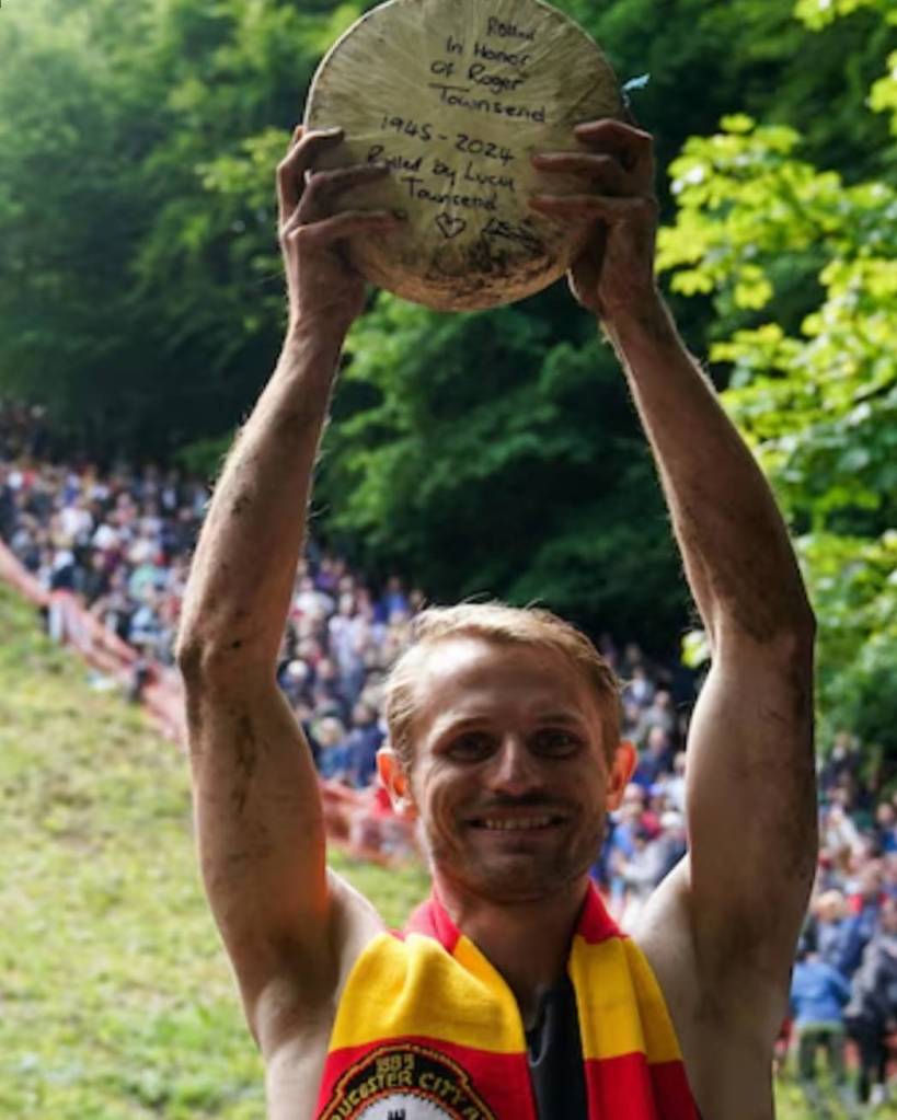Celebrating his win with the Double Gloucester cheese held aloft in triumph, he joined the ranks of global competitors drawn to this peculiar spectacle.