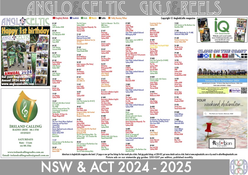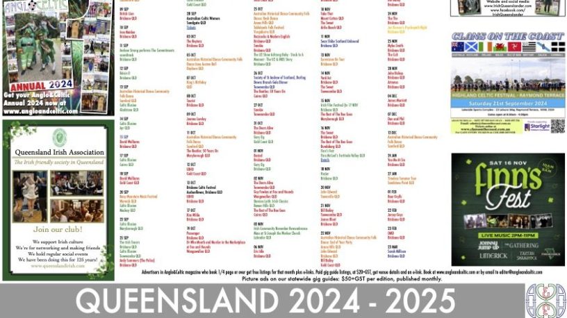 Every month, Anglo&Celtic publishes free gig guides for what events are happening across our communities for that month. But we don’t just have information for one month ahead, we have all the deets for what’s going to be happening many months ahead of time… and now we’re going to share those dates with you in gig guides too, so you can plan your fun events and festivals months in advance.