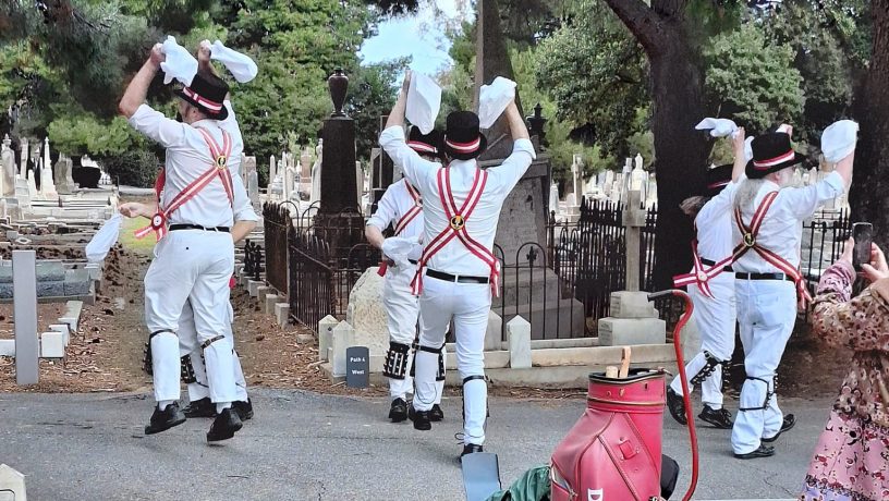 The Adelaide Morris Men celebrated Percy Aldridge Grainger’s 142nd birthday in July with a lively foot-up at his grave in West Terrace Cemetery.