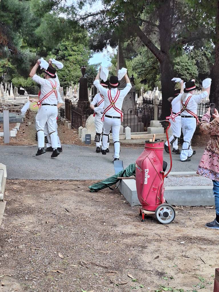 Pictures: The Adelaide Morris Men held a 142nd birthday party at the grave of composer Percy Grainger in July. Credit: Duncan Ritchie on Facebook.com/AdelaideMorrisMen