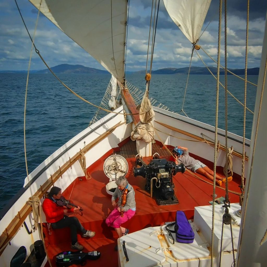 Sailing from Oban, the crew explored this unique region of Scotland, helping set sails and steering the ship; playing tunes on deck as they sailed along; and joining in sessions in Lady of Avenel’s comfortable saloon and venues ashore in the evenings.
