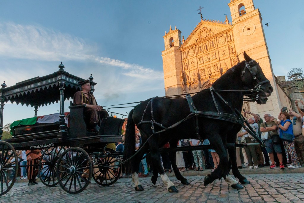 In 2024, the streets of Valladolid once again echoed with the sound of bagpipes, as the empty coffin representing Red Hugh O’Donnell was carried through the city in a horse-drawn carriage, flanked by torchbearers in period costume. The ceremony was organised by the Hispano-Irish Association, with its president Carlos Burgos saying: “The king of Spain wanted to give him a royal funeral, so that’s what we tried to remember.”