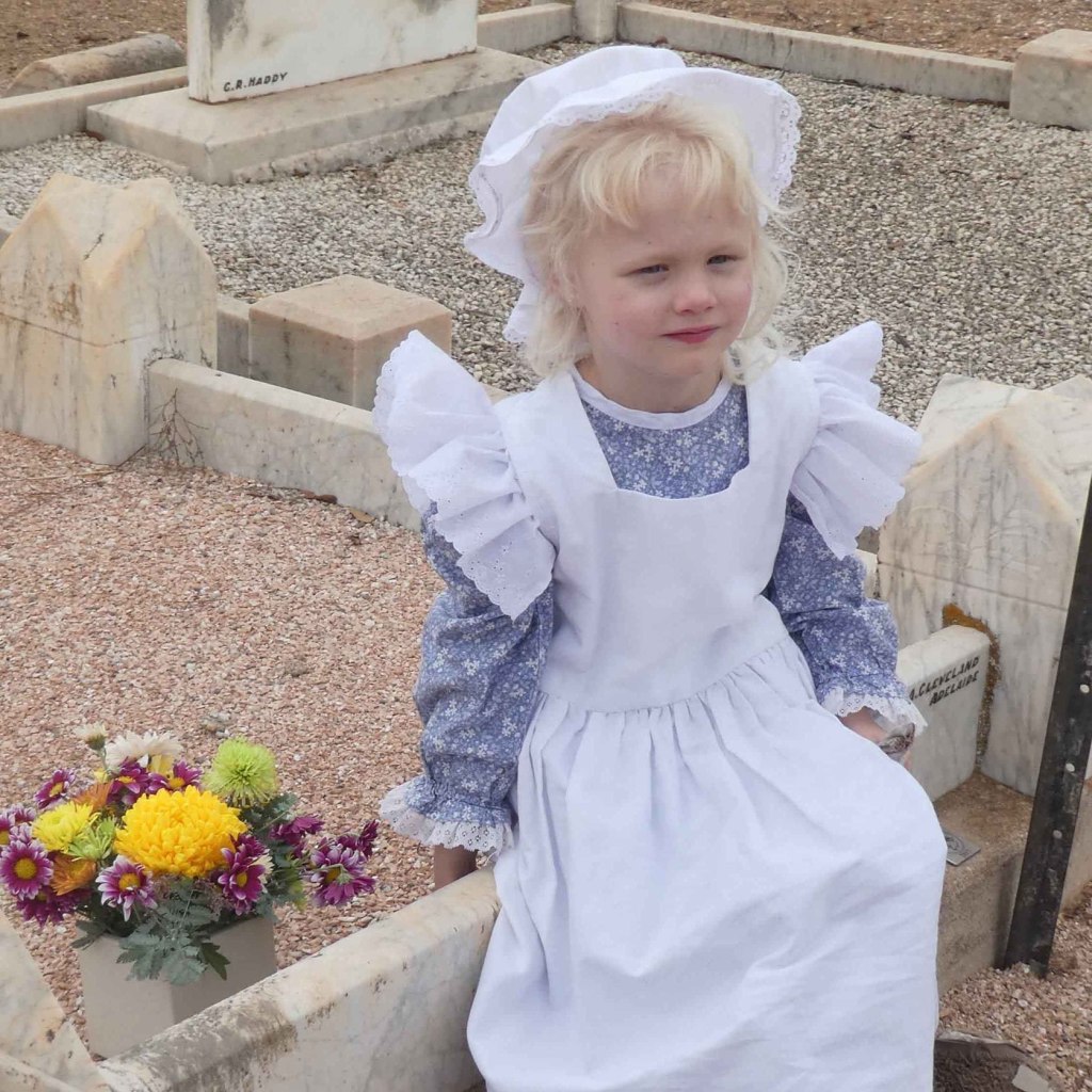 Pictures: A child in traditional clothing takes part in the Dressing of the Graves ceremony in South Australia. Credit: facebook.com/Dressing The Graves Copper Coast
